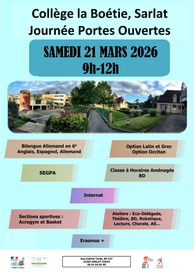 Retour des dossiers de candidature et des fiches de renseignements pour le vendredi 12 avril 2024 à la loge du collège (dernier délai)