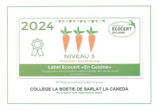 Le restaurant scolaire du collège La Boétie, composé d’un chef de cuisine, de trois cuisiniers et de quatre aide-cuisiniers, prépare chaque jour environ 900 repas (300 le mercredi). Le 17 octobre 2024, il a été audité dans le cadre de la labellisation Ecocert en cuisine.