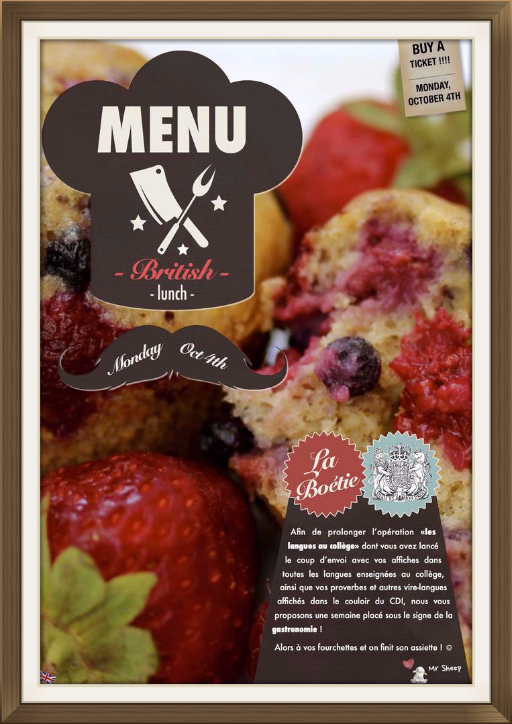 Enfin, en partenariat avec le personnel des cuisines des menus typiques français, anglais, espagnol, grecque et allemand ont été proposés. Cette opération a permis aux élèves de découvrir les coutumes culinaires des pays dont ils apprennent la langue et donc d’ouvrir leurs papilles à des saveurs différentes de la cuisine française et par là même de leur proposer une ouverture culturelle et la tolérance des traditions intrinsèques aux pays étrangers.